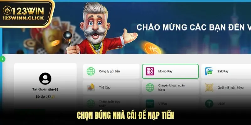 Bước quan trọng đầu tiên, hội viên vẫn phải lưu ý lựa chọn đúng trang web đang hoạt động của nhà cái để đăng nhập. Vào ngay mục nạp tiền 123WIN đã được thiết kế ở góc bên trái của giao diện.