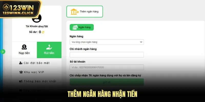 Liên kết ngân hàng rút tiền 123WIN phải chuẩn xác