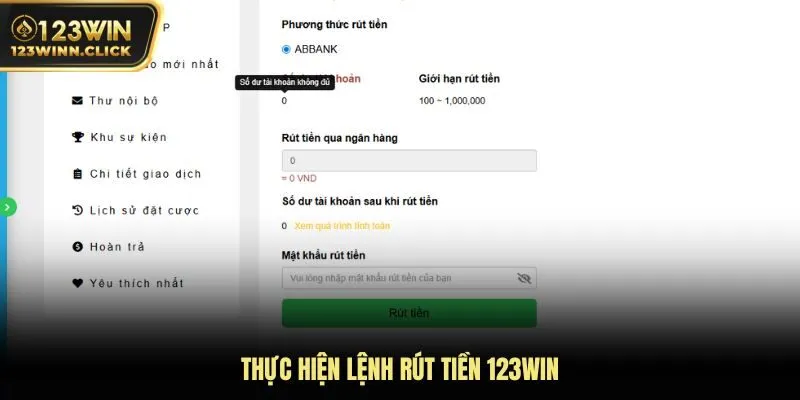 Thực hiện lệnh rút tiền 123WIN